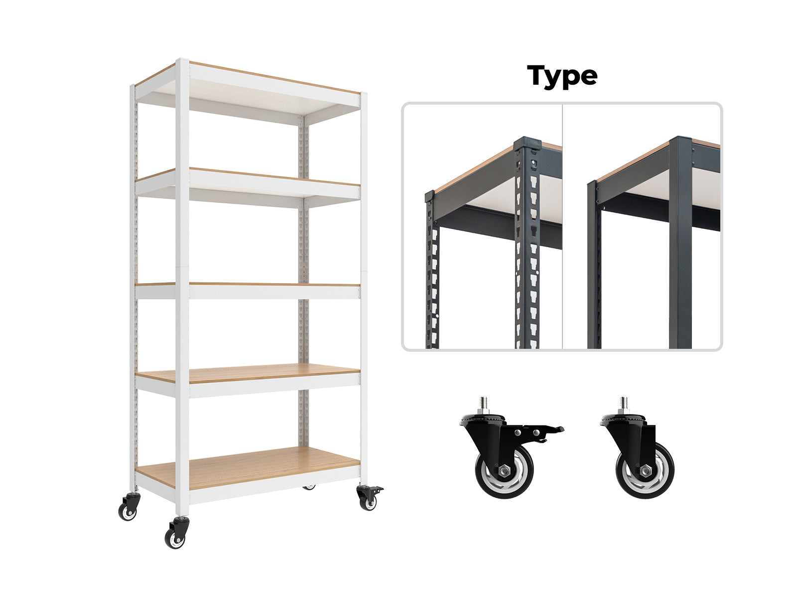 Mobile metal shelving with heavy-duty casters for flexible storage and easy repositioning. |