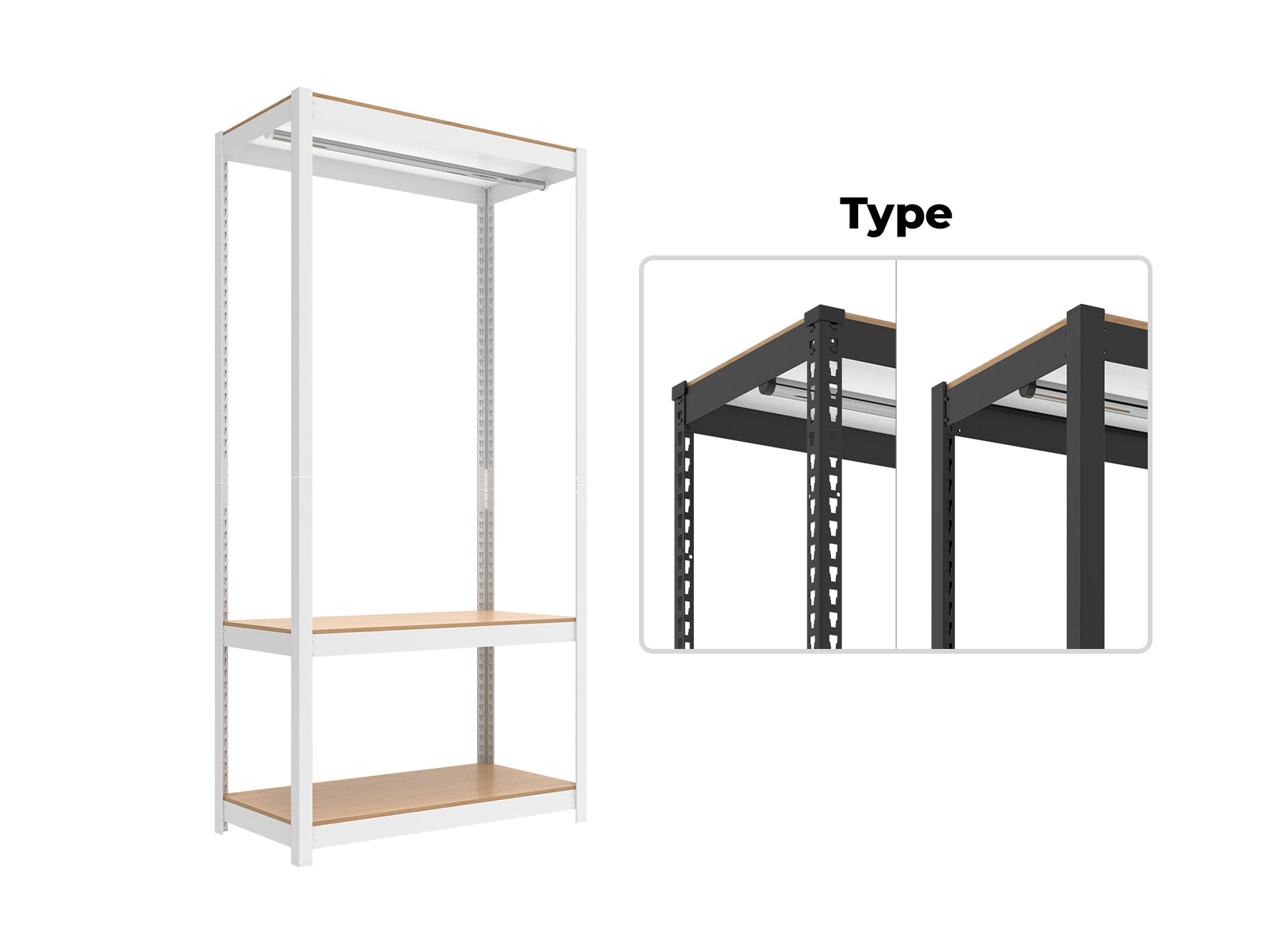 We combined hanging racks and shelving to suit our needs, and the layout flexibility was excellent.