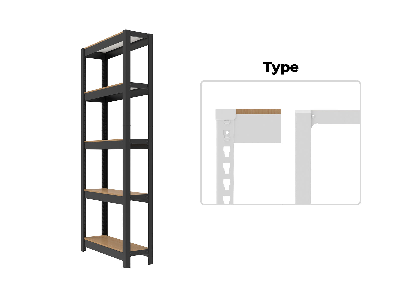 Space-saving metal shelving designed for narrow areas without compromising strength or durability. |